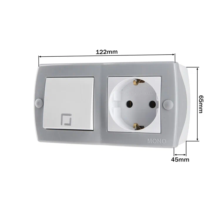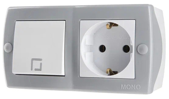 Octans Выкл. 1 кл. + Розетка с/з Серый (6)