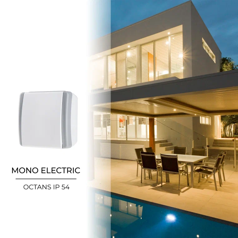 Octans Выкл. 2 кл. + Розетка с/з с крышкой IP54 (4)