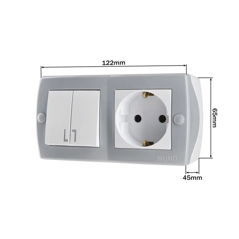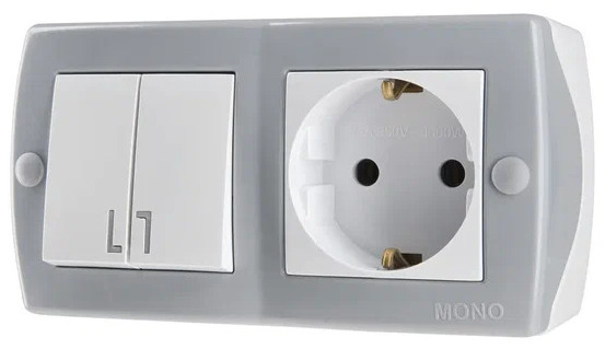 Octans Выкл. 2 кл. + Розетка с/з Серый (6)